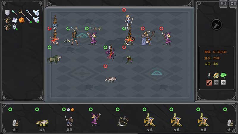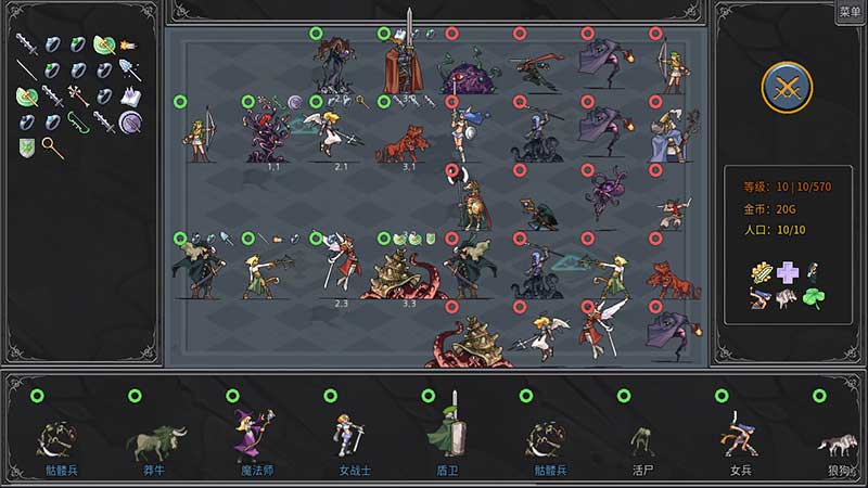 Spelers kunnen voor elke nieuwe ronde willekeurige eenheden aanwerven en deze op het bord inzetten. Door dezelfde eenheid meerdere keren aan te werven, nemen hun stats en vaardigheden toe.