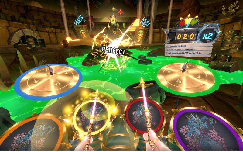 Drums Rock is een ritme arcade game gebouwd voor VR. Drummen is nog nooit zo leuk geweest, met tientallen vrij te spelen drumstokken, trommels en nummers. Drums Rock heeft vier moeilijkheidsgraden, meer dan 19 rocknummers en visueel verbluffende eindbaasgevechten.