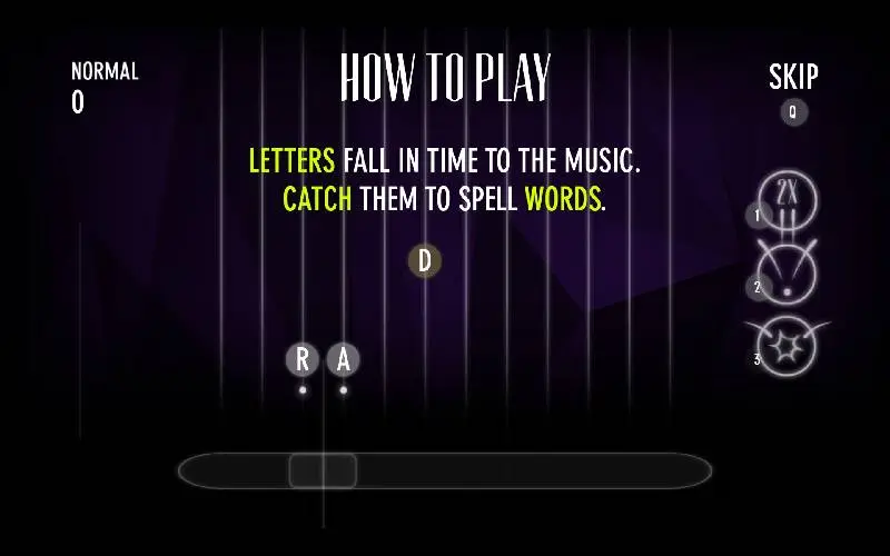 Jouw zoektocht? Spel woorden op de maat. Alphabeats mengt snelle woordspelingen met pulserende elektronische muziek. Vang vallende letters, vorm woorden en ga mee op het ritme. Kies uit de ingebouwde nummers of speel met je eigen nummers.