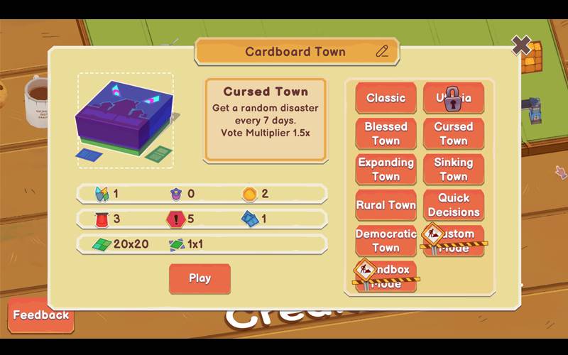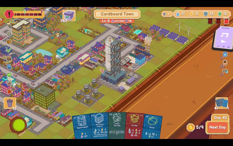 Welkom in Cardboard Town, waar strategische stadsplanning samensmelt met de opwinding van roguelite-avonturen! Dompel jezelf onder in de perfecte combinatie van creatieve stadsbouw en onvoorspelbare kaartmechanica. Streef naar hoge scores, navigeer door onverwachte avonturen en ontdek betoverende verrassingen in elke ronde.