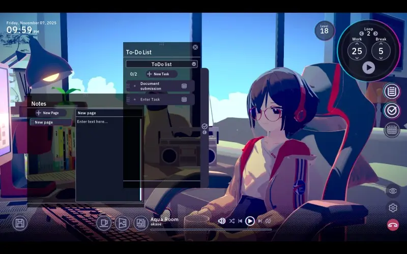 • Kies uit tal van rustige lo-fi-muzieknummers die zijn gemaakt om je te helpen concentreren of te ontspannen terwijl je werkt.