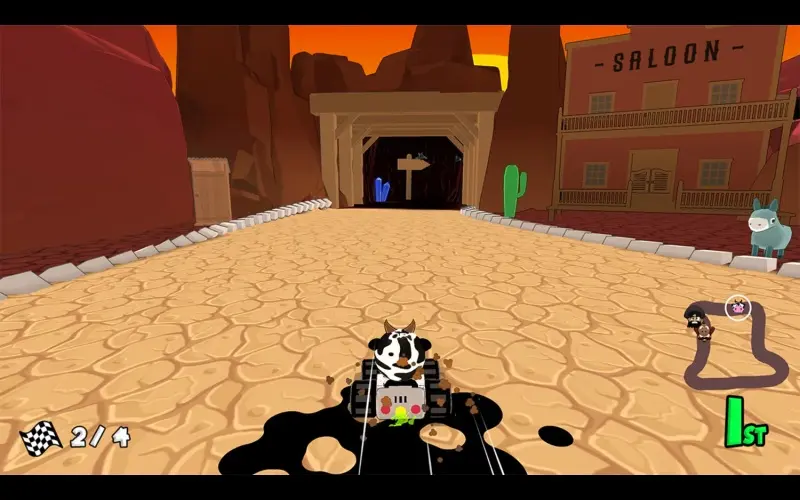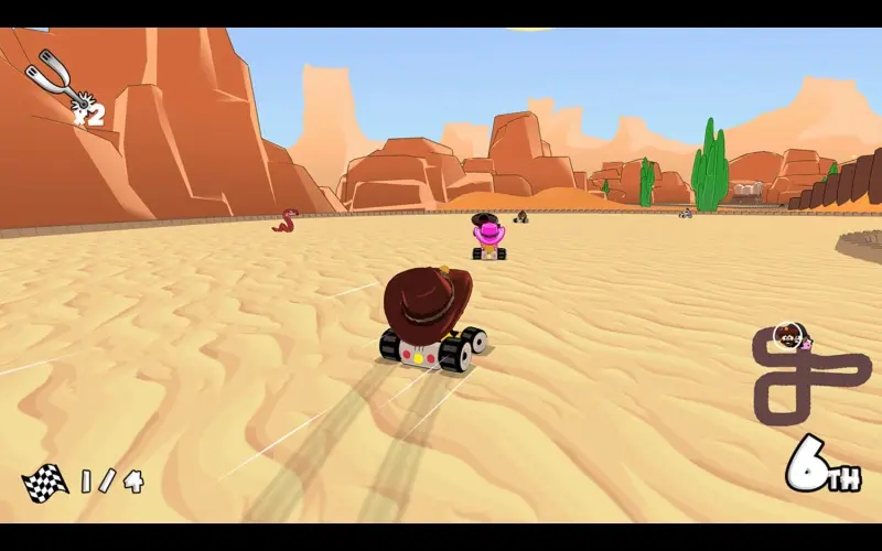 Stoffige wegen wachten op racers die klaar staan om hun snelheid te bewijzen. Ze ontwijken obstakels terwijl ze naar de finish racen om de overwinning te behalen. Neem de leiding en daag vrienden uit op circuits in split-screen.