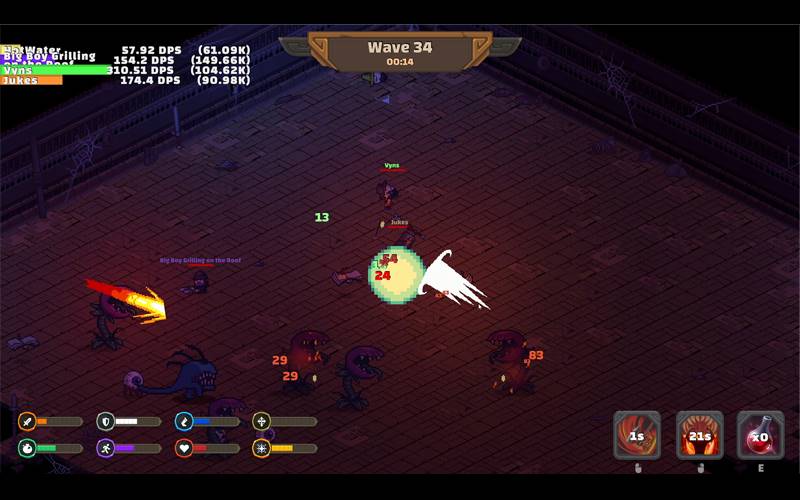 Dungeon Survivors is een top-down actie roguelike overlevingsgame vergelijkbaar met het genrebepalende vampire survivors, ontwikkeld door TopVR. Je kunt kiezen uit vijf verschillende klassen met elk hun eigen vaardigheden en manieren om te vechten tegen een horde fantasiemonsters die jou proberen te doden. Op het slagveld kun je kiezen uit een verscheidenheid aan voorwerpen en vaardigheden, waardoor je elke keer unieke gebouwen creëert. Hoe lang zul je overleven?