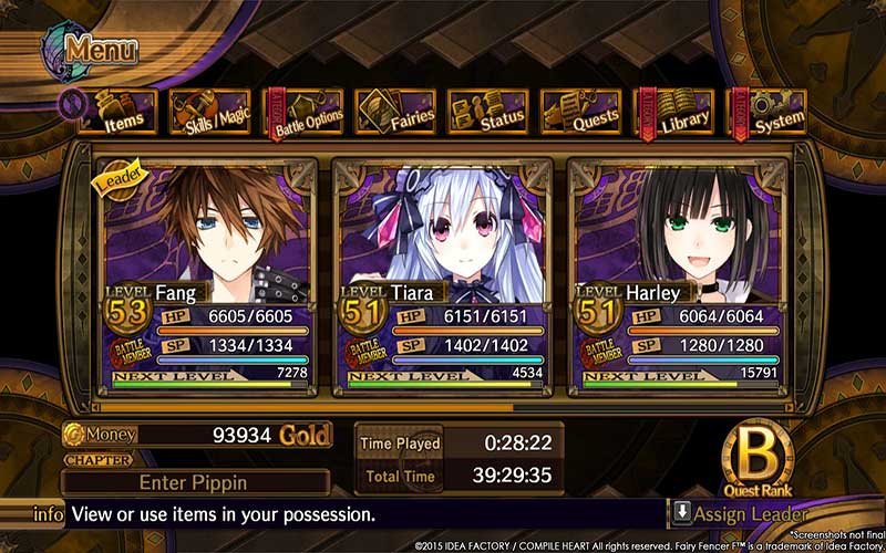 - Fairy Fencer F: Beginners Pakket – Dit bevat het Assortiment Zeldzame Materialen, het Noodpakket, en de Beginner’s Synthesis Kit.