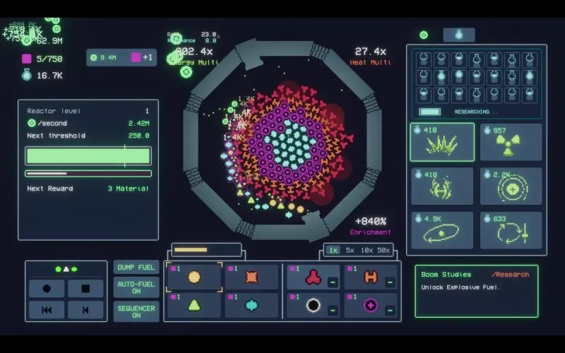 Voed een groeiende reactor en test je vaardigheden terwijl je elementen mengt om energie te produceren. Elke nieuwe ontdekking breidt je bereik uit over een vreemde melkweg en onthult meer om te combineren en te gebruiken. Elke beslissing bepaalt de kracht van je reactor!