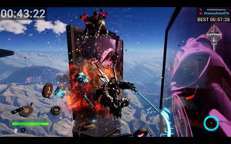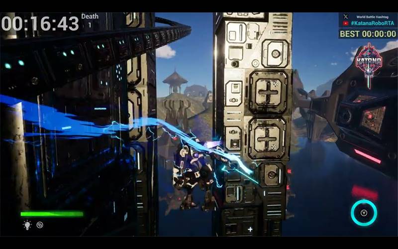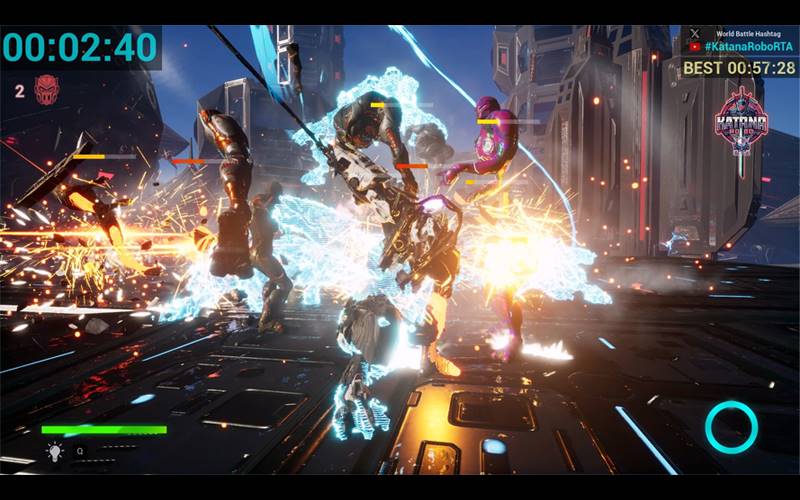 Stop Samurai Robo van het controleren van alle robots in Katana Robo RTA, een platformer waar je Katana Robo begeleidt naar de Robot Toren. Beheers de besturing, bestrijd vijanden en vernietig de Sphere. Neem deel aan speedruns met checkpoints en snelle respawns. Beklim, vecht en behaal de overwinning in deze intense race tegen de klok.