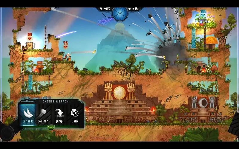 Buitenaardse robots vallen een wereld van oude goden en afbrokkelende tempels binnen, waar de Maya’s juichen terwijl de vernietiging uit de lucht valt. Kies je vechter, richt snel en vernietig de kern van de vijand in deze chaotische mix van tactiek, explosies en pixelachtige chaos.