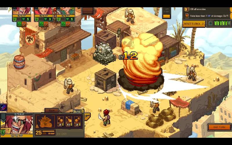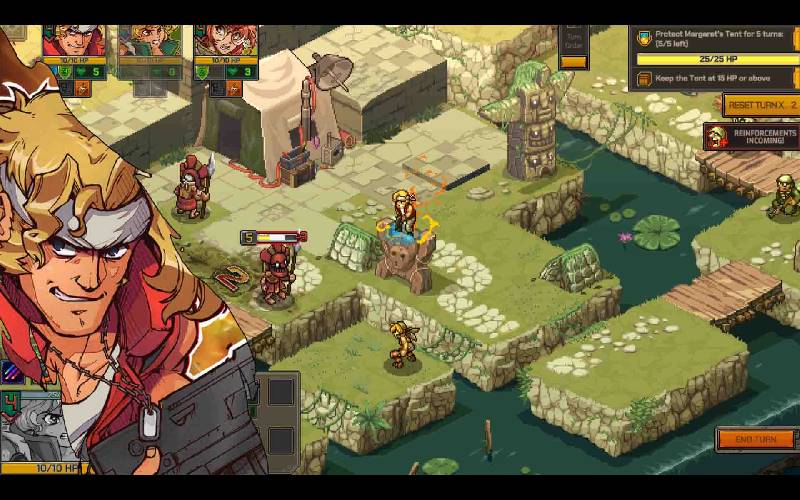 Metal Slug Tactics is een turn-based tactische RPG met roguelike-elementen, ontwikkeld door Leikir Studio. De iconische Metal Slug-serie keert terug met een frisse nieuwe kijk op de legendarische veldslagen van de serie. Leid je team naar de overwinning door strategisch vernuft en superieure vuurkracht in deze perfecte mix van actie en tactische diepgang. Verzamel ervaring na elke strijd om nieuwe wapens of bonusvoordelen vrij te spelen en de vuurkracht en tactische vaardigheden van je team te verbeteren.