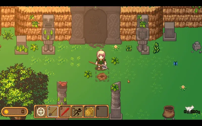 • Gezellige 2D-beelden van bovenaf met pixelart-charme, rustig tempo, sfeervolle geluiden en een warm natuurthema, gemaakt voor ontspannen spelen.