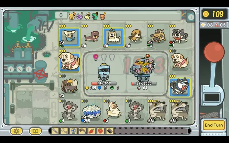 Verzamel een groep dierlijke metgezellen om gigantische robotachtige tegenstanders te bestrijden met behulp van het roulettewiel. Draai om vaardigheden te activeren, vorm sterke combinaties en draai het gevecht in jouw voordeel. Elke ronde test strategie, geluk en timing.
