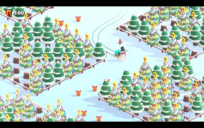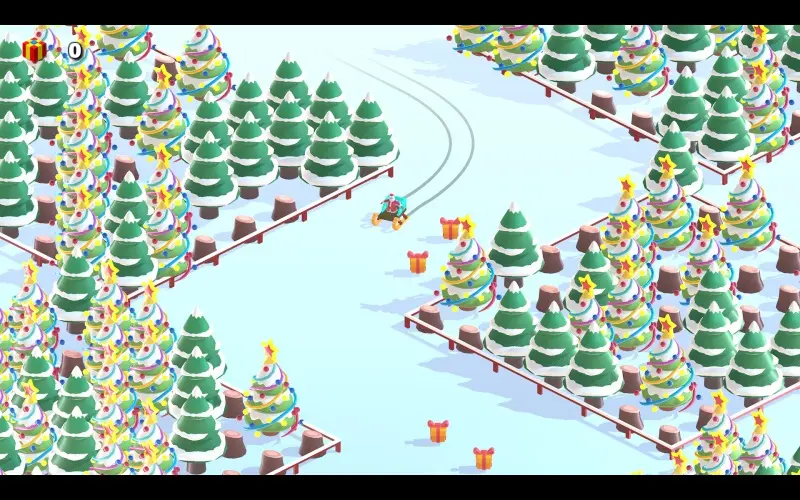 Santa raast door een besneeuwd bos over gladde zigzagpaden en verzamelt cadeaus voor kinderen over de hele wereld. De snelheid neemt toe met elke sectie, waardoor controle en timing op de proef worden gesteld terwijl de besneeuwde paden veranderen in nieuwe routes en winterse uitdagingen.