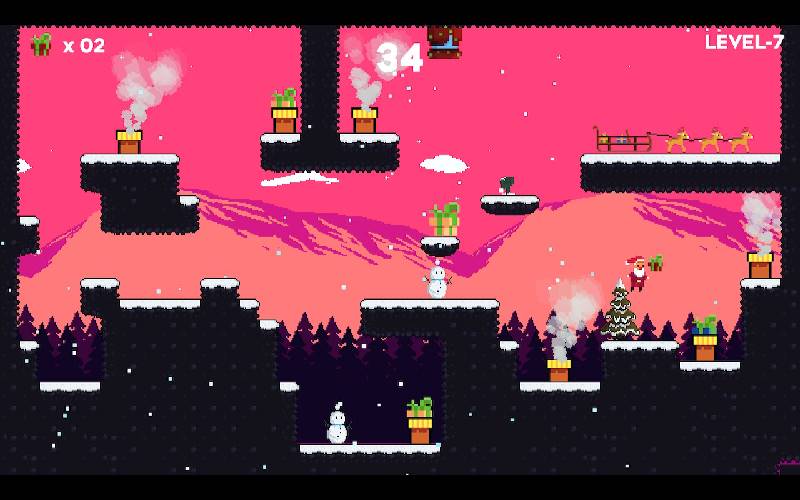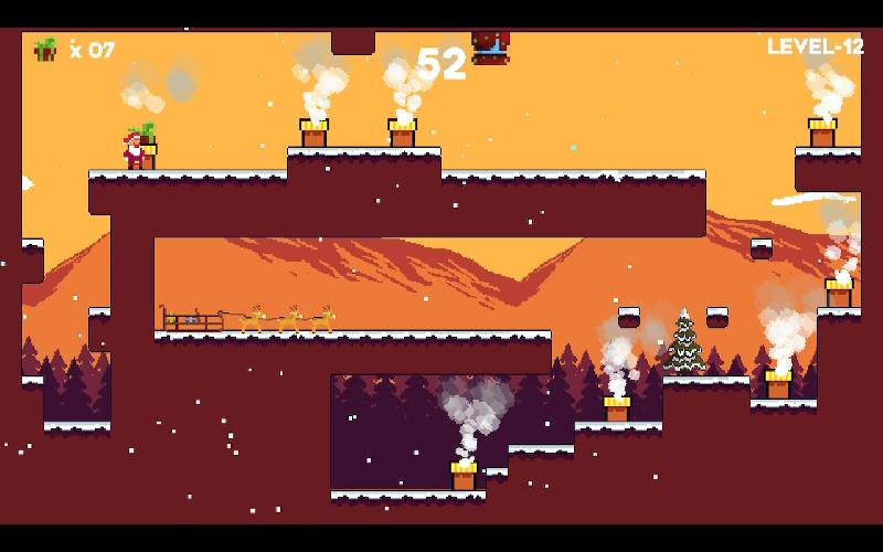 Help Santa navigeren over besneeuwde daken en schoorstenen op kerstavond in Santa’s Chimney Quest, een gezellige 2D-pixelartgame. Los puzzels op, bezorg cadeautjes en geniet van vrolijke kerstmuziek en een nostalgische soundtrack.