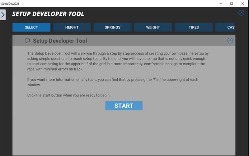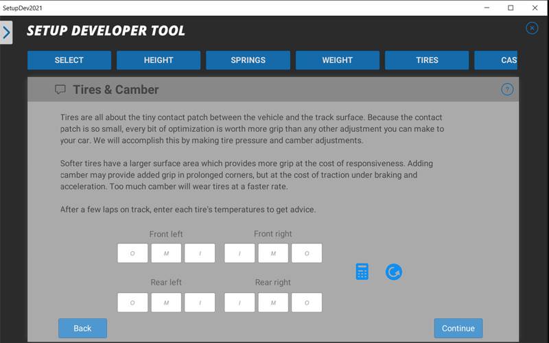 Het afstellen van een raceauto voelt overweldigend? Setup Developer Tool 2021 helpt je op weg! Deze stapsgewijze tool begeleidt je bij het maken van een setup door simpele vragen te stellen over het gedrag van je auto. Beantwoord, pas aan en finetune totdat je de perfecte setup hebt voor jouw rijstijl!