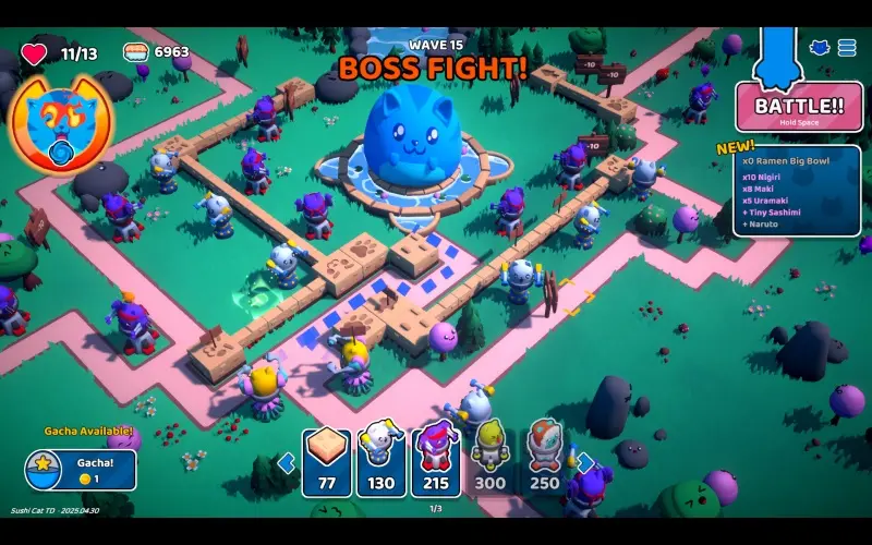 Kwaadaardige sushi-legers marcheren onder het bewind van Broccolinni, terwijl een hongerige held zich voorbereidt om zijn land te verdedigen. Door sushi te eten word je sterker, terwijl torens en paden bij elke run opnieuw worden opgebouwd. Bescherm het huis van Sushi Cats en stop Broccolinni’s plan om de wereld te veroveren!