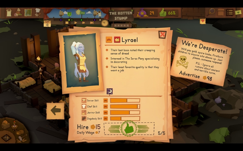 Breng uw droomtaverne tot leven met creatief ontwerp en strategisch beheer. Ga om met onverwachte uitdagingen en diverse klanten terwijl u elk detail van uw etablissement perfectioneert in een levendige fantasywereld.