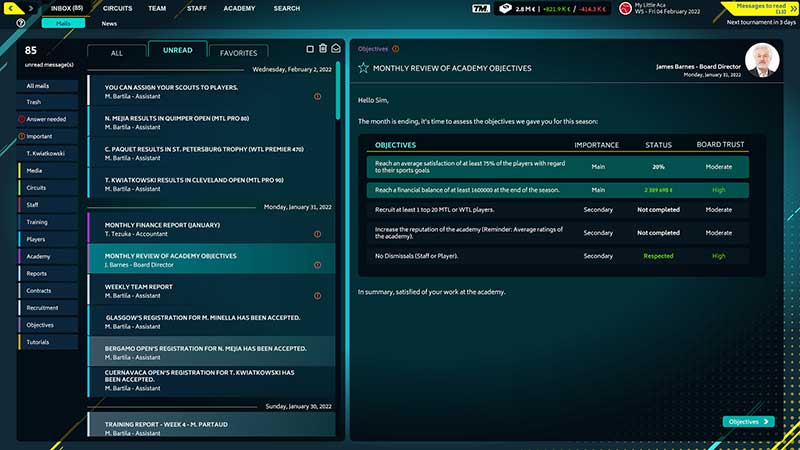 Word tenniscoach of manager van een tennisacademie in Tennis Manager 2022. Coach je toekomstige tennisster met nieuwe en realistische functies.
