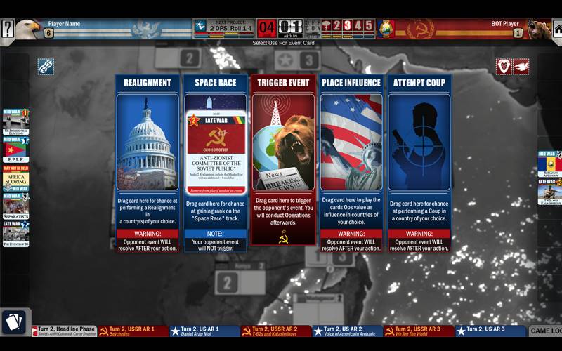 Speel “Twilight Struggle Red Sea” en ervaar de spanning van de Koude Oorlog die zich concentreert rond de Hoorn van Afrika. Kies ervoor om de VS of de Sovjet-Unie te vertegenwoordigen, met als doel dominantie terwijl je een nucleair conflict vermijdt.