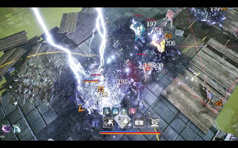 • Lanceer raketten, bliksem en zaagbladen automatisch, terwijl willekeurige kisten nieuwe wapens laten vallen.