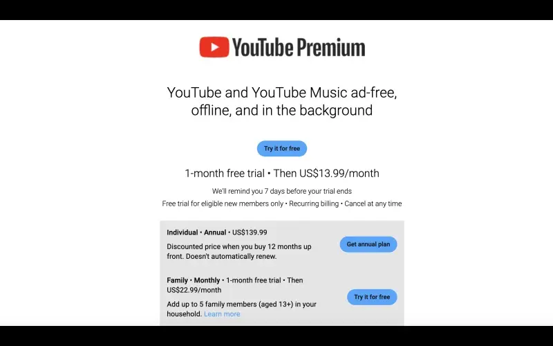 Onze PC game prijstracker stelt je in staat om moeiteloos aanbiedingen te vergelijken van officiële winkels en CD sleutel webshops. Houd de YouTube Premium Subscription price trends op PC in de gaten en krijg een melding wanneer het spel de gewenste prijs bereikt. Mis nooit meer de beste deal of een YouTube Premium Subscription prijs uitverkoop.