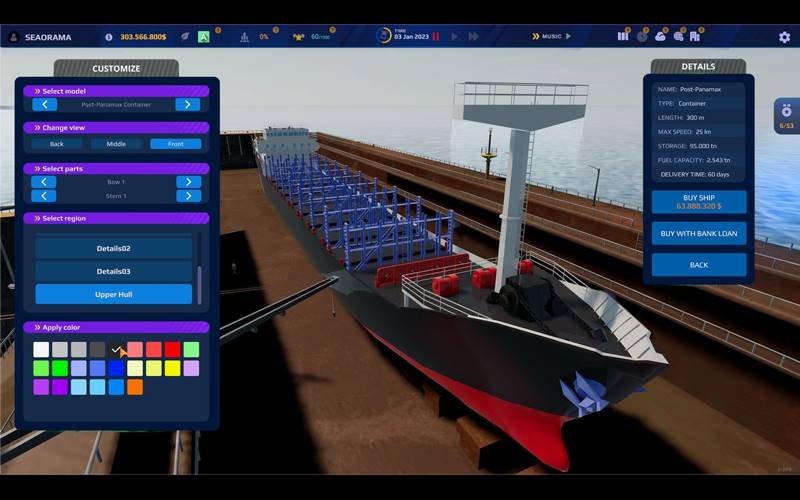 Richt je eigen verzendimperium op in Seaorama: World of Shipping. Transformeer een enkel schip tot een maritieme grootmacht door strategische beslissingen en slimme investeringen. Zie hoe je bedrijf evolueert, van bescheiden begin tot een dominante kracht in het wereldwijde handelslandschap.