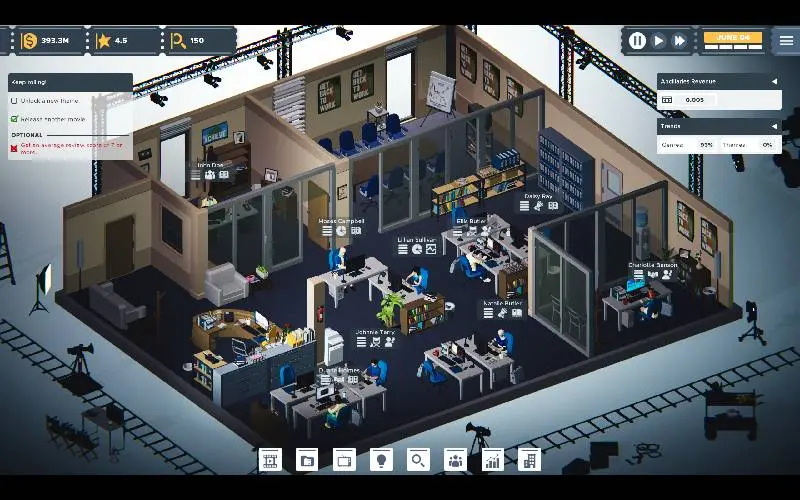 • Verbeter je studio door de voorzieningen te verbeteren, toptalent aan te trekken en te beslissen of je voor erkenning of kassucces gaat.