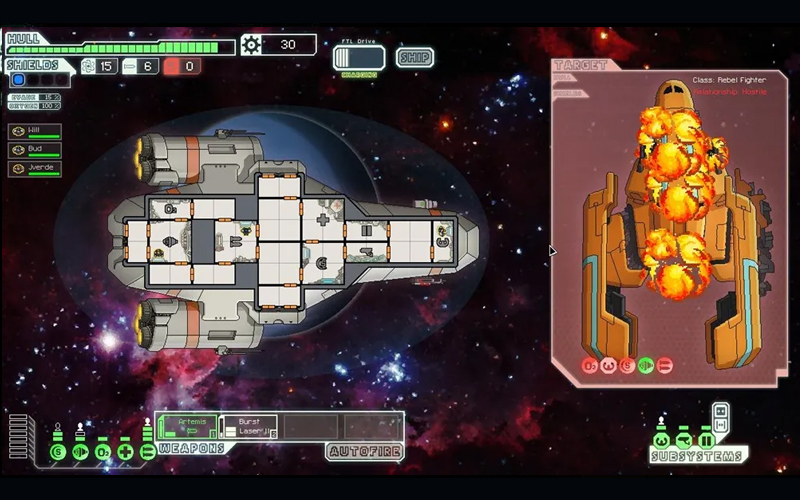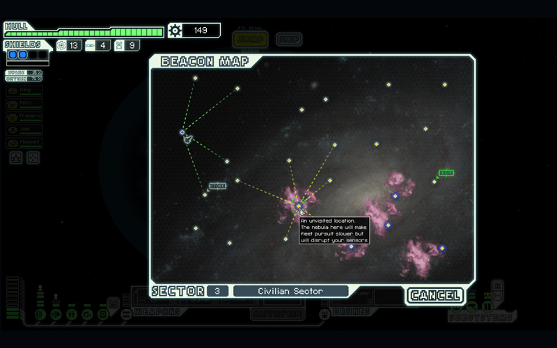 Race door het heelal in FTL: Faster Than Light, een meeslepend ruimteavontuur! Beheer een ruimteschip, baan je een weg door een procedureel gegenereerde melkweg, ga intense gevechten aan, werf bemanningsleden aan en maak je schip superkrachtig om de titel van ruimtekampioen te claimen. Denk aan Star Trek ontmoet Dungeons & Dragons, opgevoerd met extra lasers en meeslepende ruimtepiraten voor maximaal plezier!